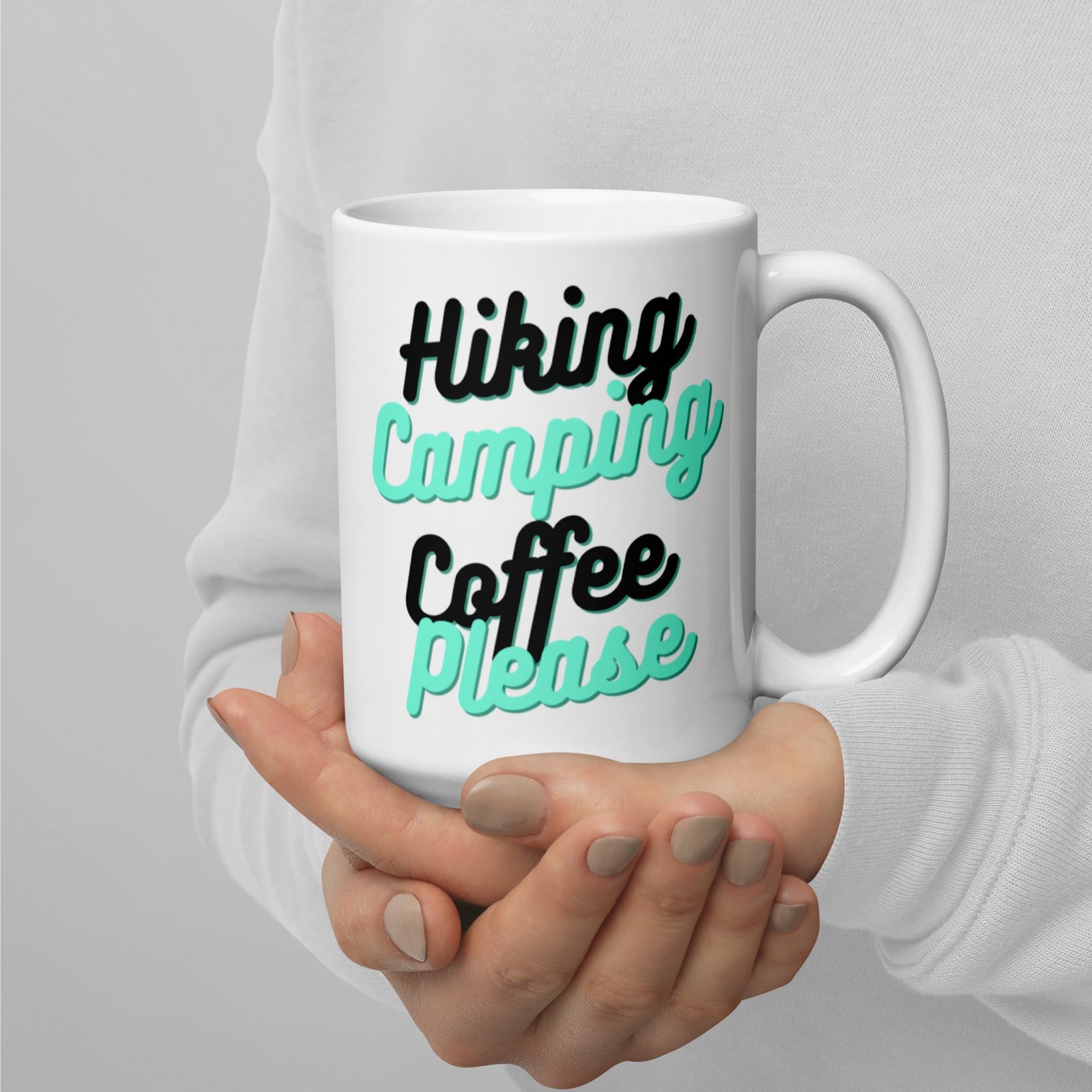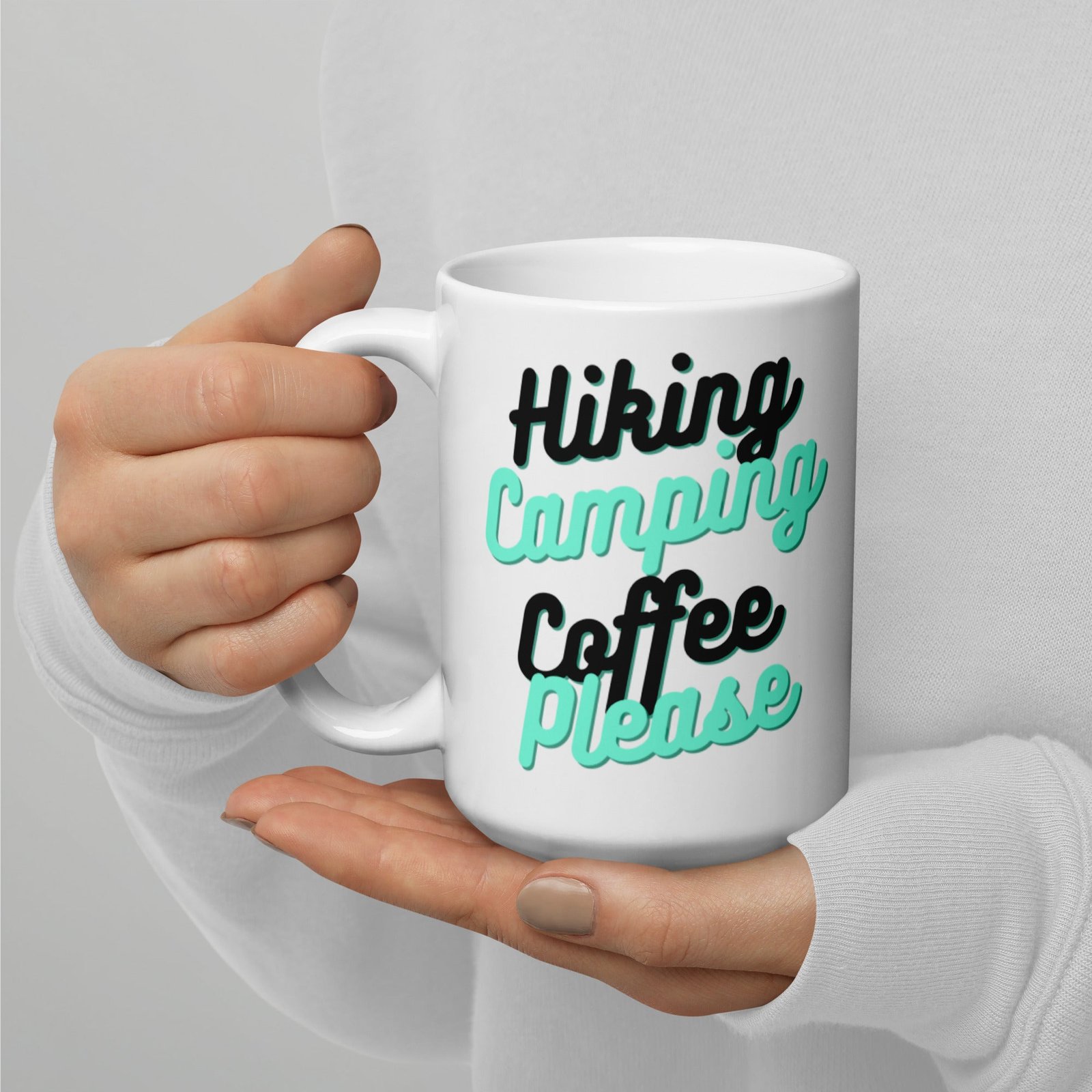 HIking Camping Coffee Please Coffee Mug whether you’re drinking your morning coffee, evening tea, or something in between—this mug’s for you! It’s sturdy and glossy with a vivid print that’ll withstand the microwave and dishwasher.